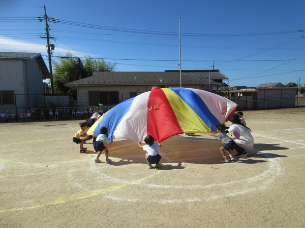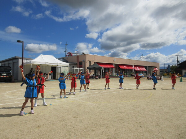| 10/11(土) 天気が心配されましたが、当日は青空の下、運動会を開催することができました。 「ふたばっこ げんきいっぱい がんばるぞ!」の合言葉でスタートした運動会。 ゴールめざして一生懸命走ったり、音楽に合わせて元気に踊ったり、親子で仲良く体を動かしたりして楽しい運動会となりました。子どもたちは、今までの頑張りをお家の人に見てもらうことができ、とても嬉しそうでした。 |